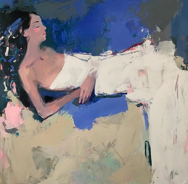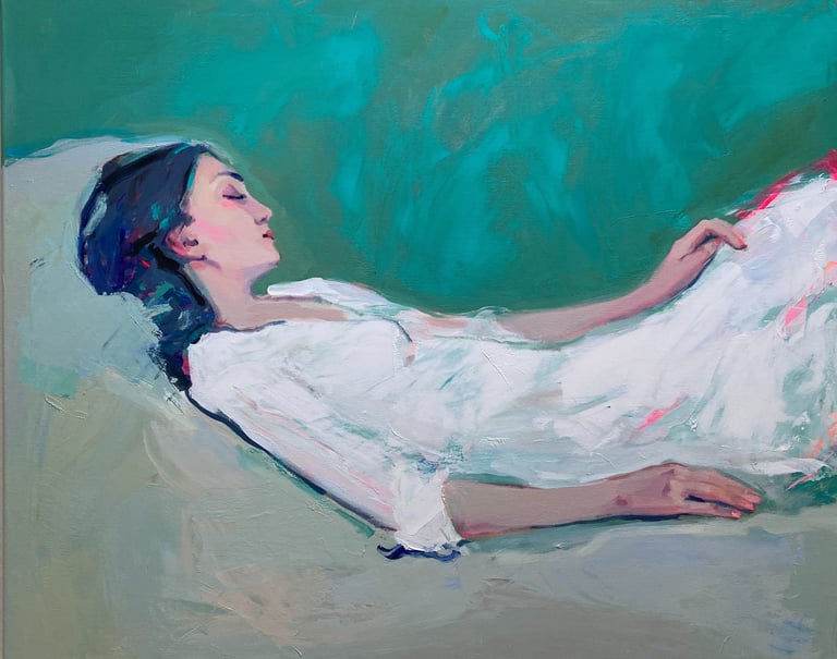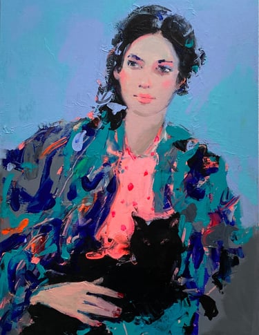 Bright colors and intuitive brushstrokes merge in Liliya Nikolova´s paintings to create a lively homage to femininity. Her work embodies a deeply intuitive approach, embracing the female gaze to explore themes of authenticity and inner truth. A recurring tension defines her work: Set against expressive, untamed backgrounds, her calm and confident figures embody the delicate balance between inner stillness and the wildness of the world. A quiet strength runs through her work, reflecting the dual need to be both grounded and resilient.